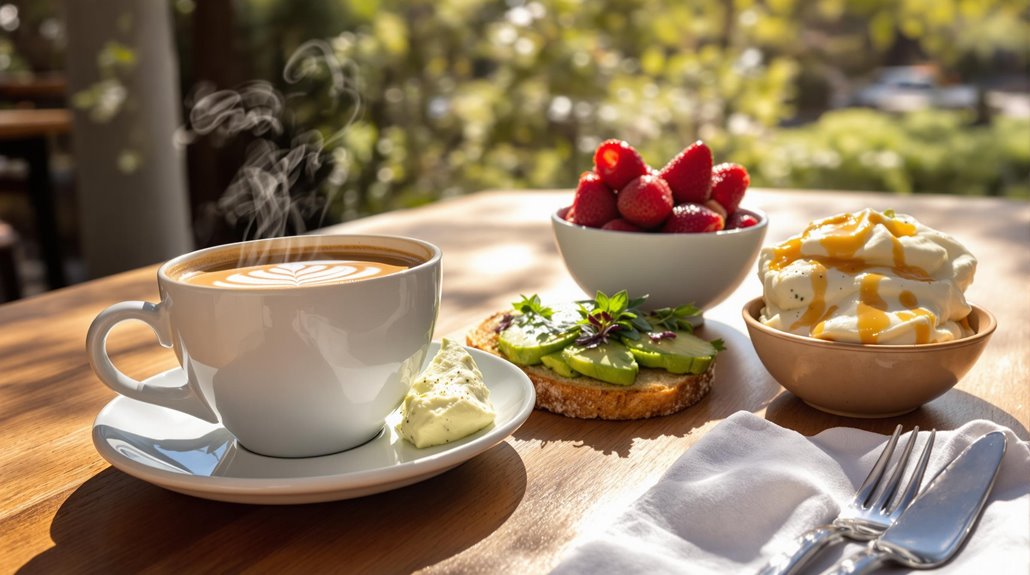 When camping in Texas parks, start your day with hearty outdoor breakfasts that fuel adventure. Enjoy no-cook options like yogurt with granola or prepare classic campfire eggs with Texas flair. Dutch oven delights like biscuits and gravy or breakfast casseroles satisfy bigger appetites.