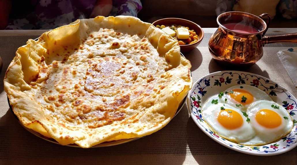 As you journey through Pakistan's provinces, you'll encounter fascinating regional variations that showcase the country's cultural diversity. From Balochistan's sajji to Khyber Pakhtunkhwa's Kabuli palaw, each region adds its unique touch to the morning meal. Whether you're enjoying a warm paratha or savoring a bowl of traditional nāshtā, you're participating in a time-honored tradition that values both nutritional sustenance and community connection at daybreak. Like the beloved pancakes with lemon enjoyed in England, Pakistani breakfast offerings balance contrasting flavors to create memorable morning meals.