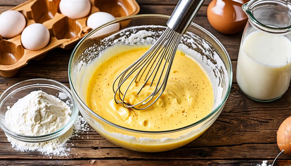 Mastering gluten formation is crucial for making perfect pancake batter. When you mix flour with liquid, proteins called glutenin and gliadin bond together, forming a network. This gluten network is essential for the structure of your pancakes. It traps carbon dioxide bubbles produced during the leavening process, which makes your pancakes fluffy.