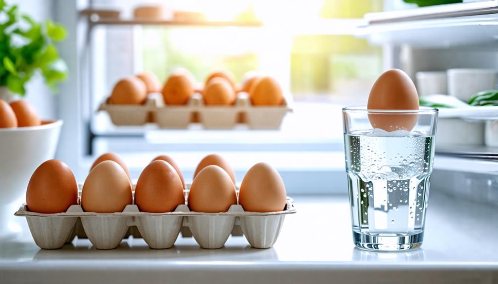 To ensure your eggs are fresh, check for tight whites and centered yolks. Older eggs will have looser whites and flatter yolks. Store your eggs in the refrigerator to extend their shelf life, which can often reach up to 60-70 days. A simple water test can help you determine freshness: fresh eggs lie flat, while older ones stand or float, indicating they should be discarded.