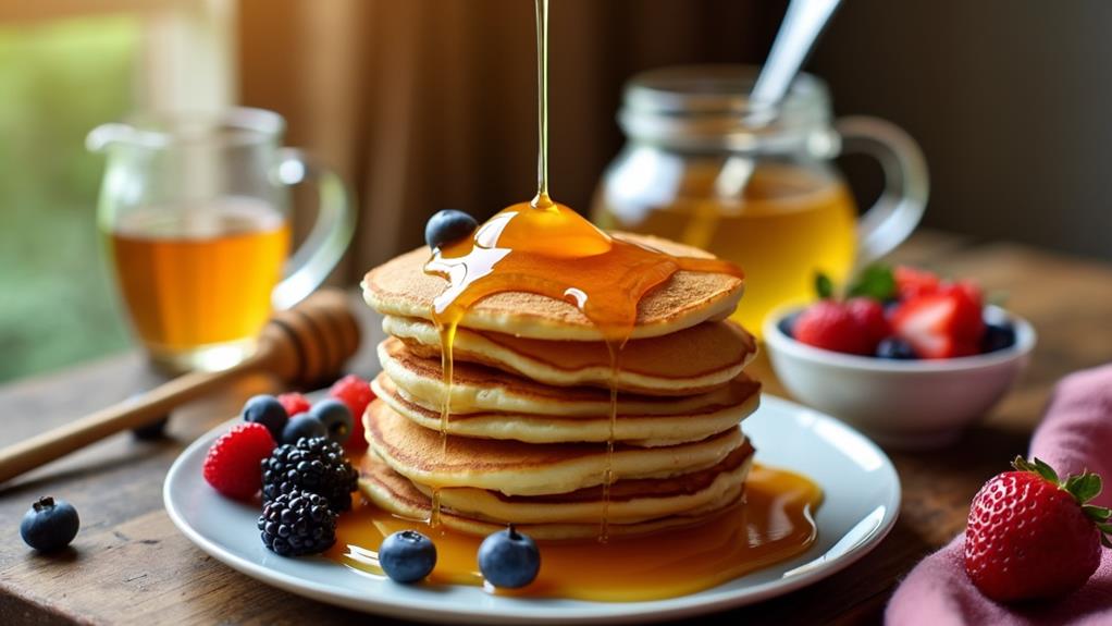 When exploring healthier alternatives to traditional pancake syrup, you'll find several natural options that offer both flavor and nutritional benefits. Pure maple syrup stands out as a top choice, containing essential minerals like magnesium and zinc, along with beneficial antioxidants. The USDA guarantees quality standards for maple products, requiring a minimum density of 66 brix.